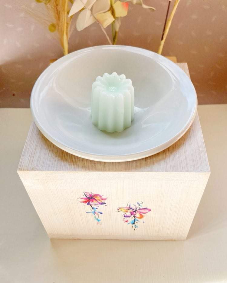 Placez tout simplement un petit fondant  parfumés dans la coupelle haute de le brule-parfum