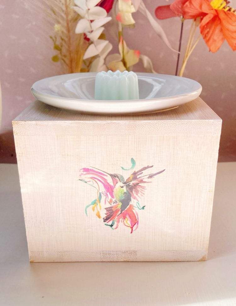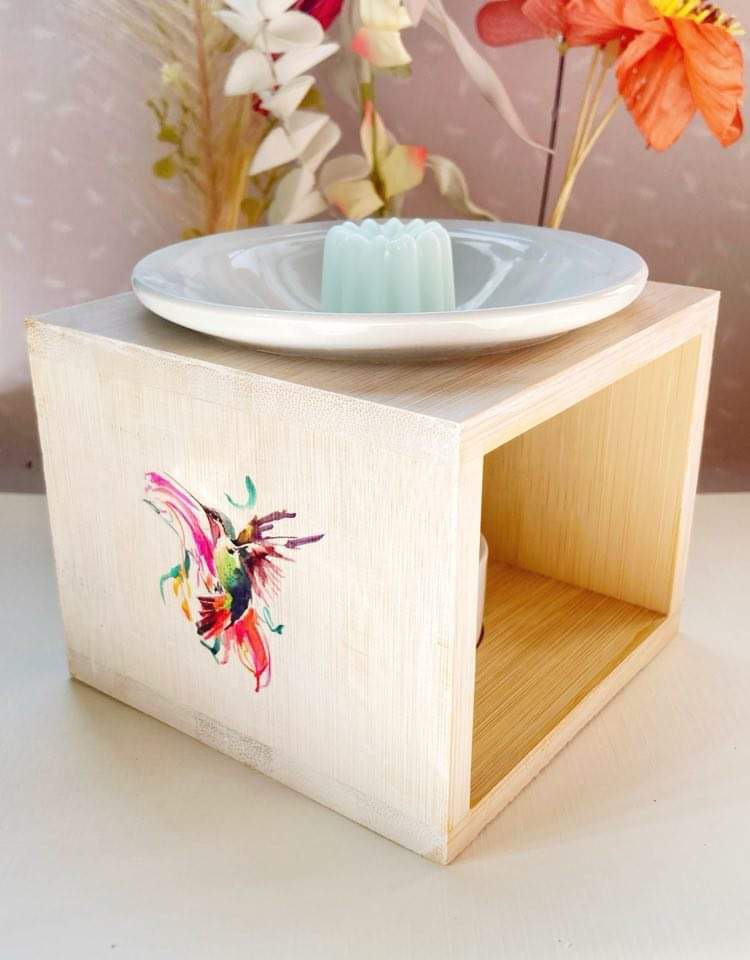 Découvrez notre magnifique brûleur de parfum floral et colibri en céramique et bambou, conçu pour sublimer votre espace avec une élégance naturelle et une touche de sérénité. Parfaitement adapté à une utilisation avec des fondants parfumés et des bougies chauffe-plat, ce brûleur est l’accessoire idéal pour créer une ambiance chaleureuse et accueillante dans votre maison.