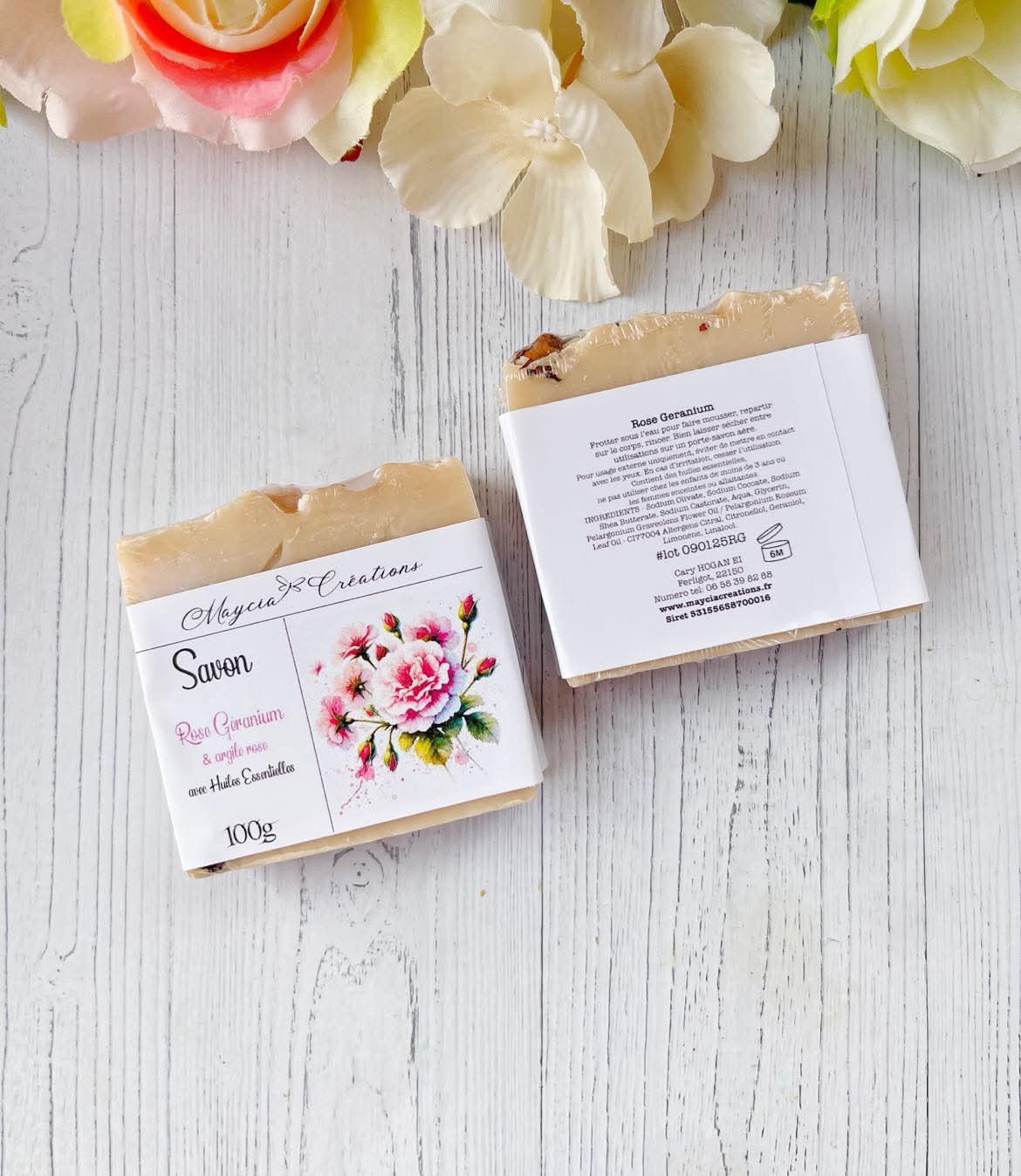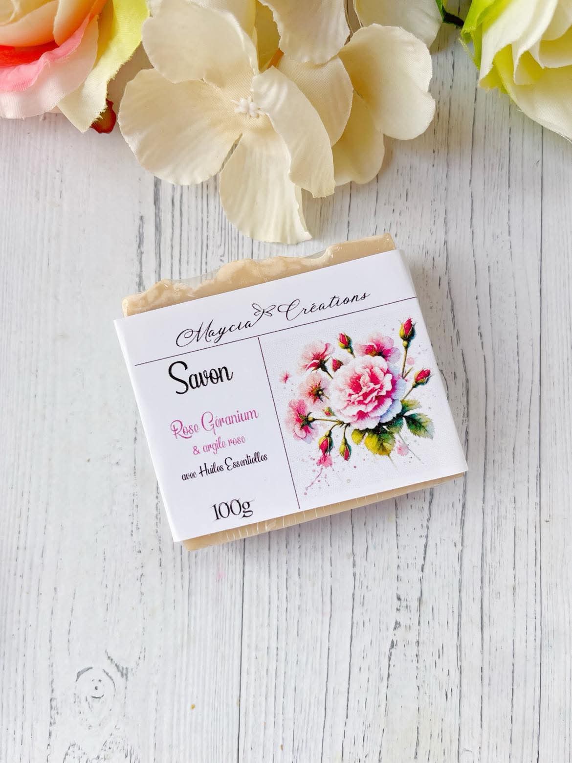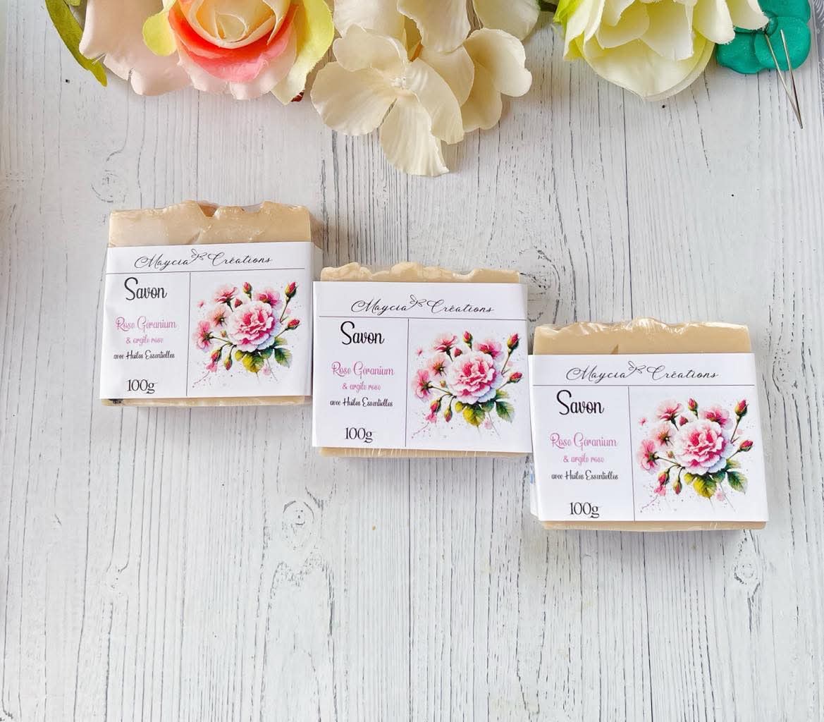 Savon Artisanal Rose Géranium – Avec Argile Rose, Doux et Purifiant