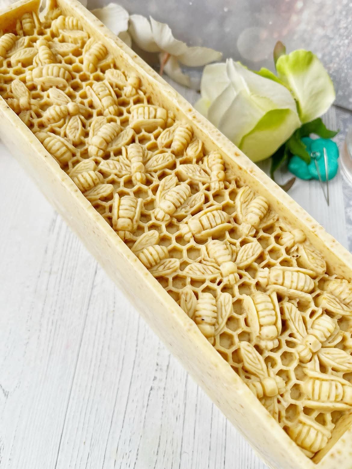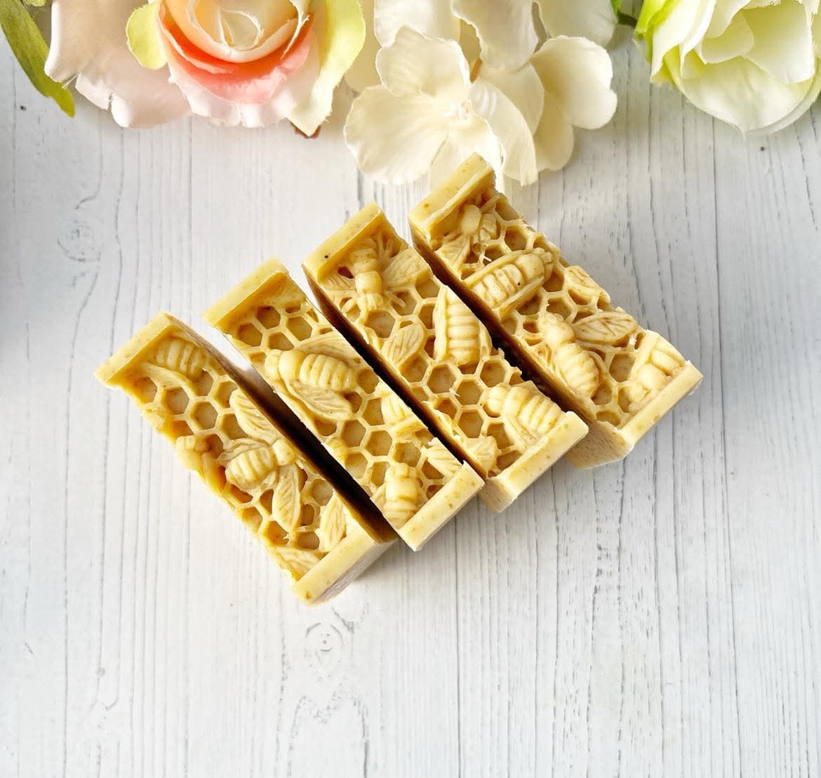 INGREDIENTS – Sodium Olivate, Sodium Cocoate, Sodium Cocoa Butterate, Sodium Shea Butterate, Sodium Castorate, Sodium Safflowerate, Aqua,  Caprae Lac,  Glycerin, Avena Sativa Kernel Meal, Mel