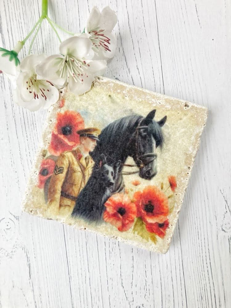 Sous-verre en pierre avec motif pavot et cheval